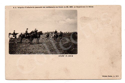 A 1.ª brigada da infantaria passando em continência em frente de SS. MM, no Hipódromo de Belém